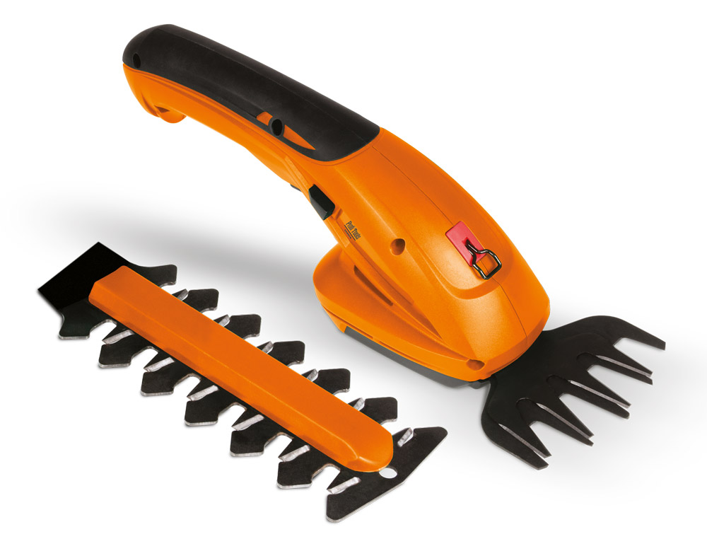Akumulátorové zahradní nůžky a zastřihávač určené k úpravě okrasných dřevin a okrajů trávníků.