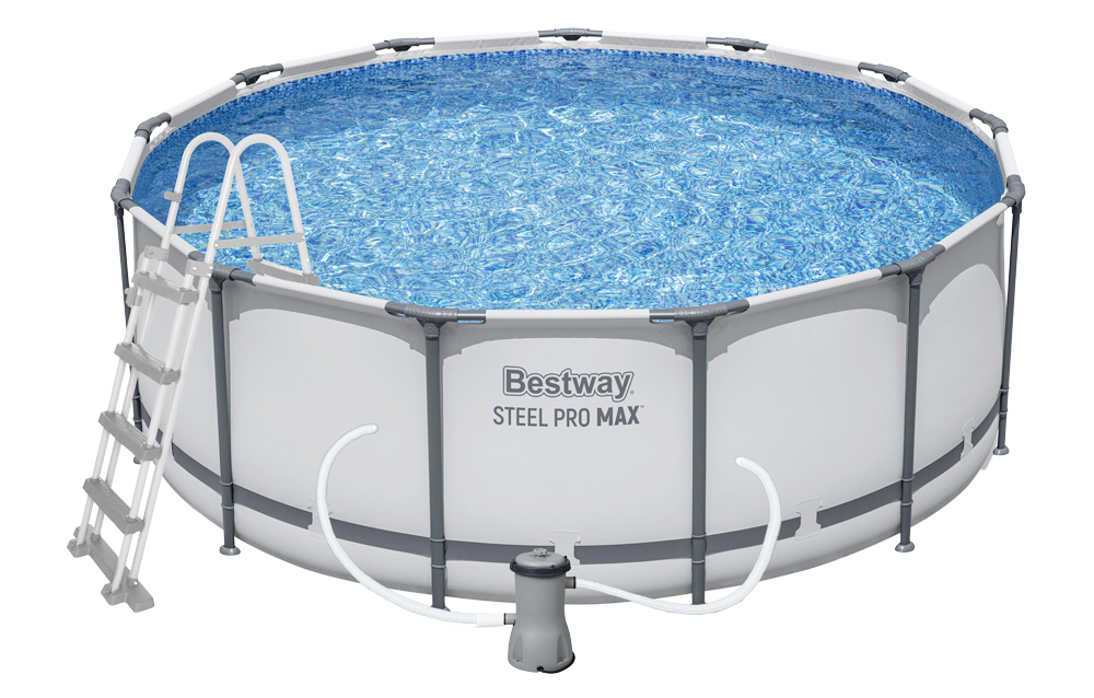 Kruhový bazén s kovovou konstrukcí. Nadzemní bazén pro povrchovou montáž je vyroben z trojvrstvého PVC, má pevné dno. Díky pružné konstrukci je bazén vhodný pro rodiny s dětmi.