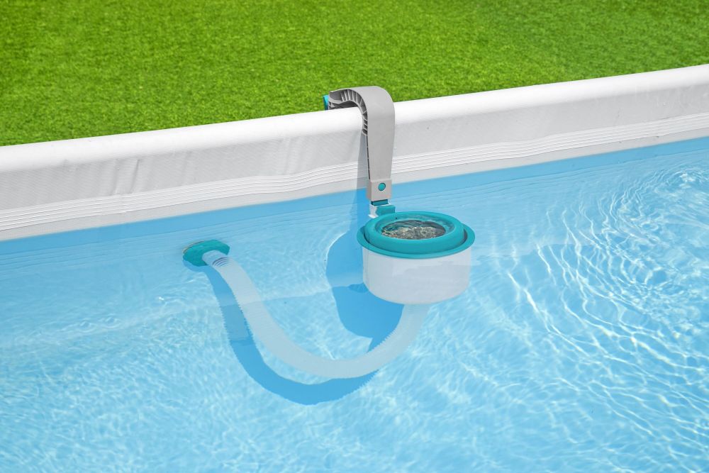 Bazénový skimmer po zavěšení na bazén sbírá hladinové nečistoty. Díky tomuto zařízení jsou sbírány plovoucí nečistoty z hladiny do filtrace.