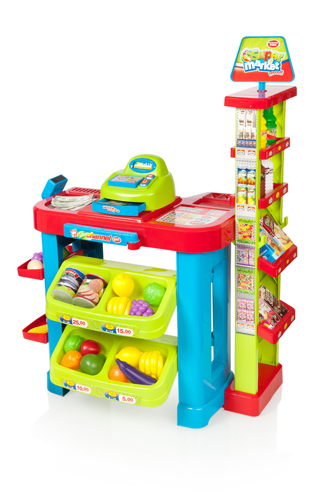 Dětský hrací stolek je klasický prodejní stánek se zeleninou, ovocem a sladkostmi. Součástí dětského stolku je pokladna s penězi, čtečka čárového kódu (s reálným zvukem) a košík na kolečkách pro zákazníka. Stačí jen vybalit, seskládat a může se začít prodávat. Součástí je velmi bohaté příslušenství pro prodej.