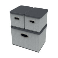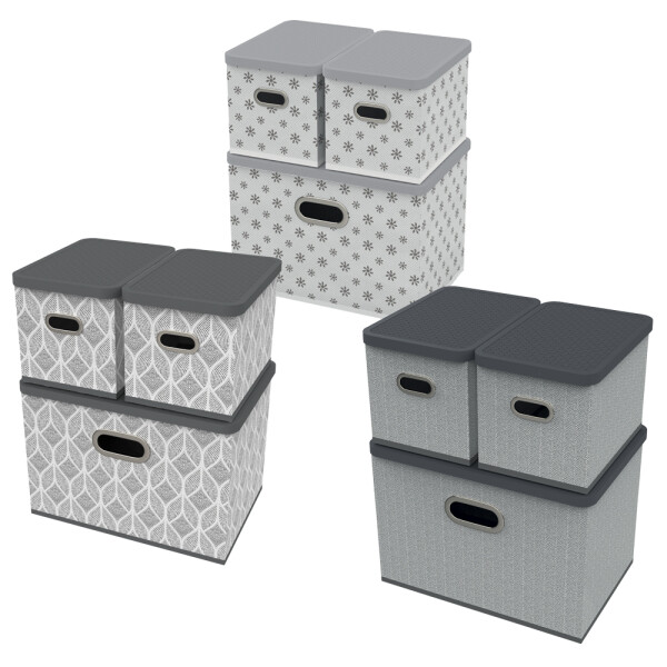 Skládací textilní box s plastovým víkem je ideální do skříní, polic, regálů, pro přehledné skladování. Úložný box má kovový úchop pro snadnou manipulaci.
