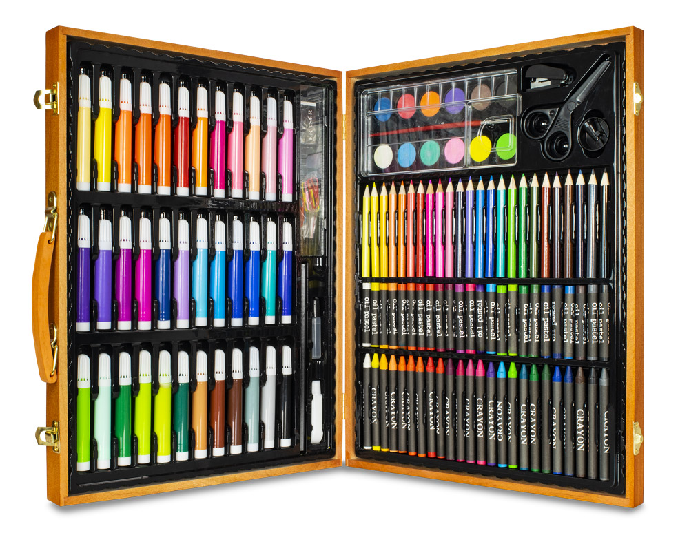 Umělecká sada pro začínající i pokročilé umělce. Vhodné jako krásný dárek pro kreativní tvoření. Kreativní sada je uložena v elegantním dřevěném kufříku - přenášení obsahu je jednoduché a pohodlné.