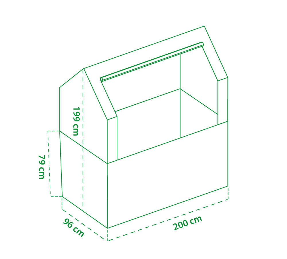 - Rozměr: 200 x 79/199 x 100 cm (délka x výška záhonu / celková výška s fóliovníkem x hloubka)
