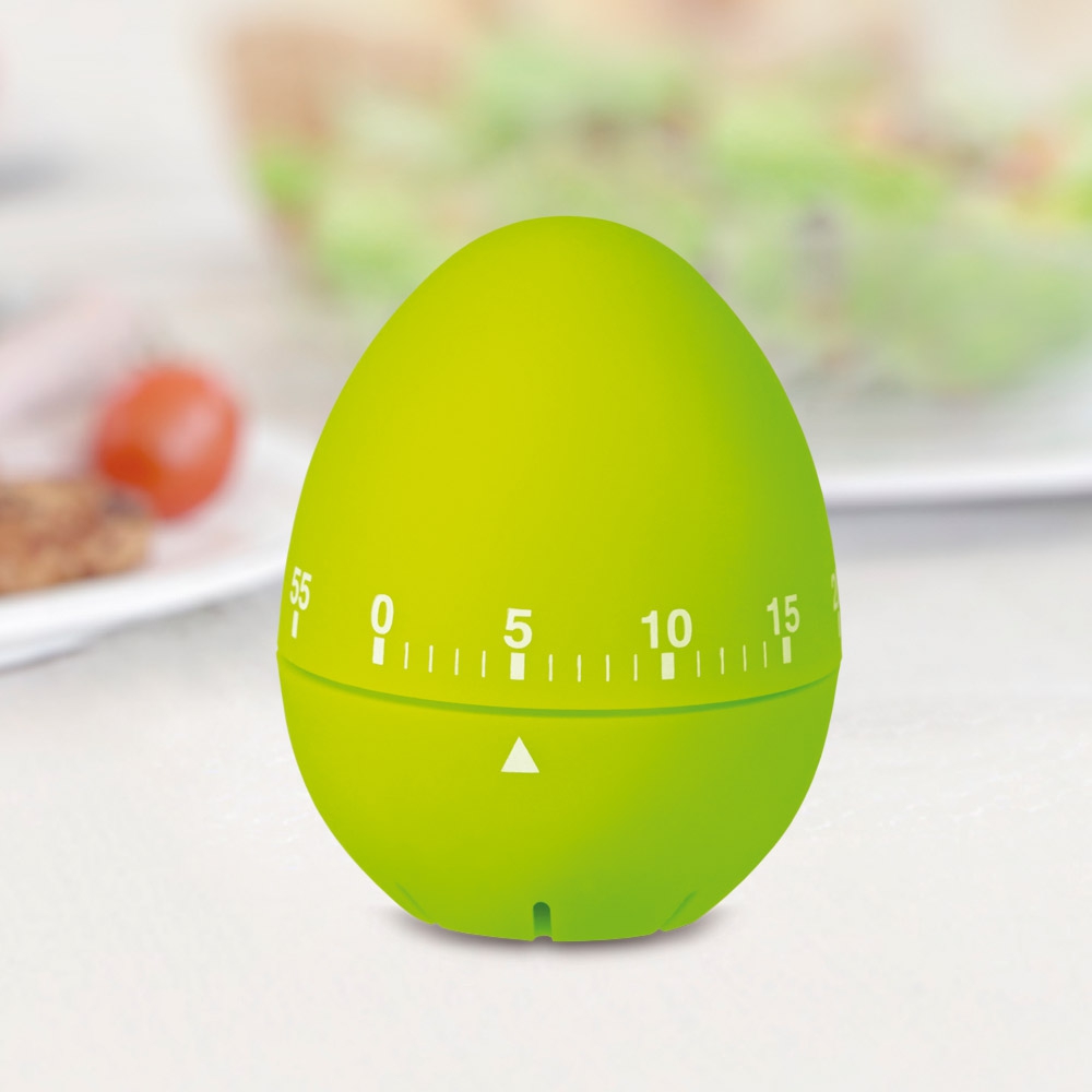 Mechanická minutka z příjemného materiálu - silikonu - ve tvaru vajíčka. Kuchyňská minutka je velmi praktický pomocník při vaření - jednoduše otočíte a nastavíte požadovaný čas (0-60 min). Klasický zvukový signál, když čas vyprší, Vás upozorní, že je jídlo hotovo.