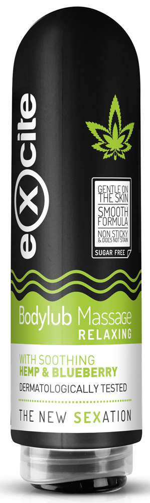 Jemný masážní gel s obsahem konopného oleje a s výtažkem z borůvek je vhodný pro relaxační masáž celého těla se šetrným složením vhodný pro citlivou pokožku obou partnerů.