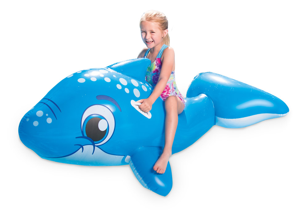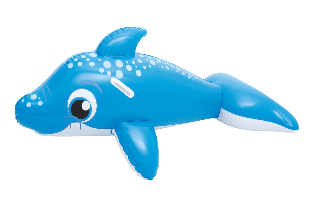 Nafukovací lehátko v podobě delfína je dostatečně dlouhé pro nasednutí a zcela bezpečné díky dvěma plastovým úchytům. Děti se po nasednutí přidržují pevných madel, která zajišťují jejich rovnováhu i při větším dovádění ve vodě.