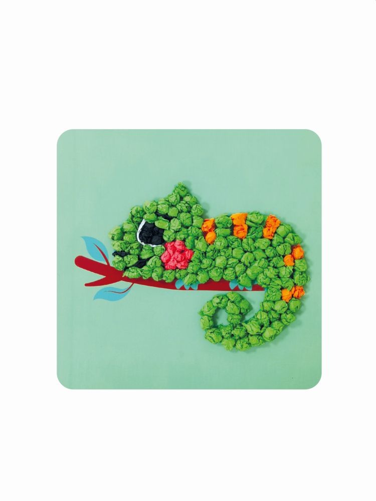 Sada obsahuje: 3 obrázky a celkem 386 barevných papírků, které se zmačkají a přikládají na vyznačená lepivá místa. Děti si tak hravou formou vytvoří krásný vystupující obrázek, který podporuje jejich tvořivost i zručnost.