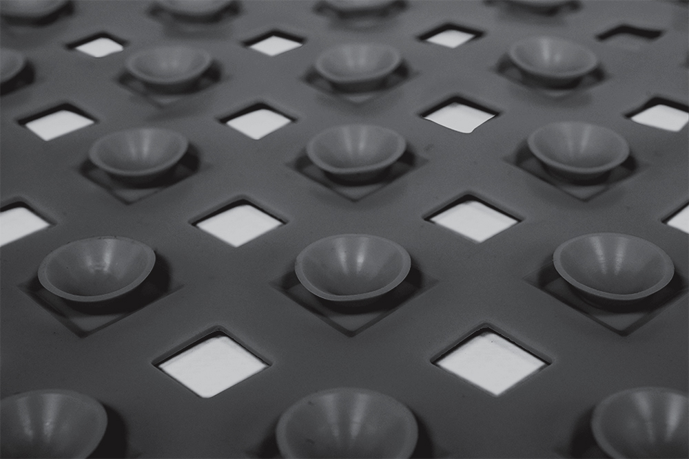 Podložka je na rubové straně opatřena přísavkami pro perfektní přilnavost, a díky kterým podložka drží na svém místě, lze ji snadno odejmout a znovu připevnit. Otvory zajišťují plynulý odtok vody. Po použití stačí opláchnout v teplé vodě a nechat usušit.