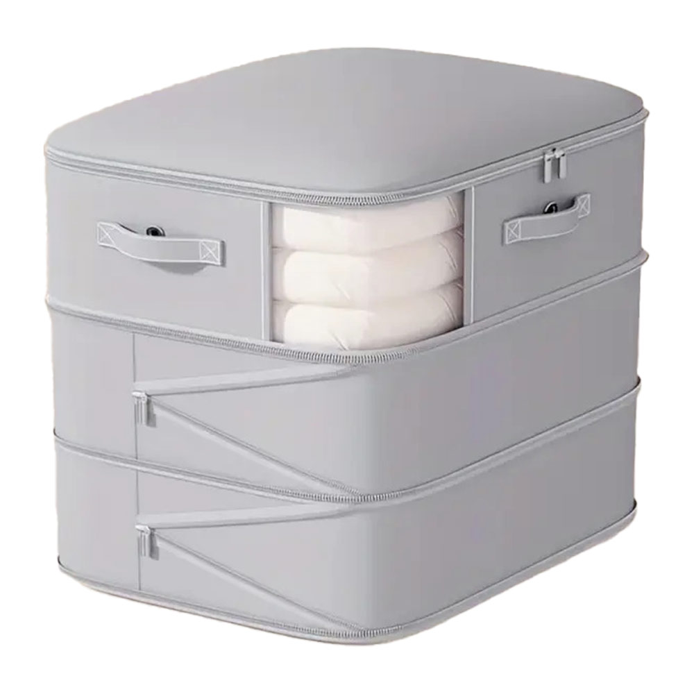 Skládací samokompresní organizér je ideální pro uspořádání a skladování zimních přikrývek, dek, svetrů, přehozů, prostěradel, dětského oblečení a dalších sezónních věcí. Hladká a měkká tkanina chrání oblečení před záhyby a skvrnami a zajišťuje vysokou funkčnost a odolnost během cestování. Vrchní část na zip umožňuje snadnou manipulaci s předměty, jako je oblečení a deky, takže je ideální pro stěhování, cestování a ubytování na kolejích.