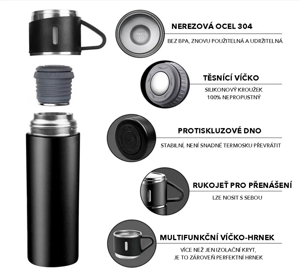 - nápoje zůstanou v požadované teplotě, ať už je to horký čaj, káva nebo ledově vychlazený nápoj